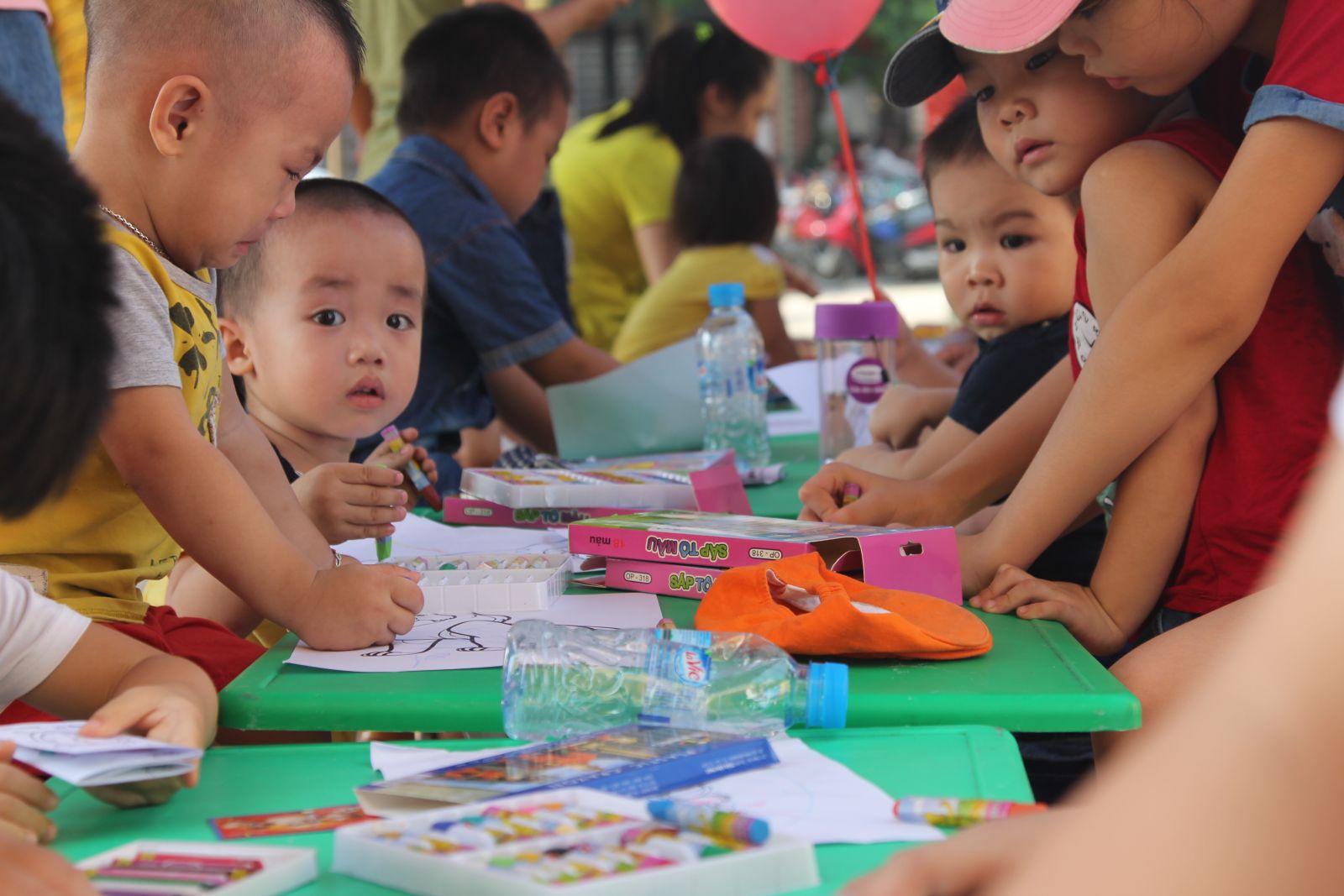 - 100 hộp bút màu, 200 bức tranh tô màu được tặng cho các bé