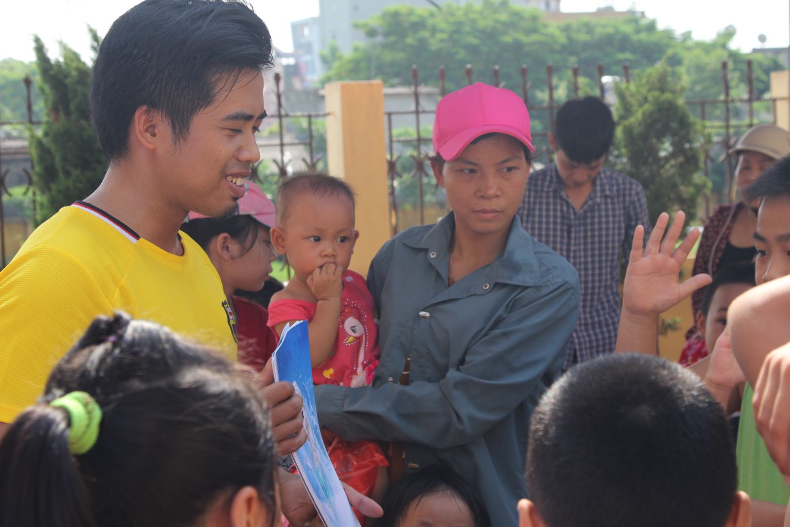 Nụ cười của anh Thanh - thành viên trong ban tổ chức khi dẫn trò chơi cho các bé.
