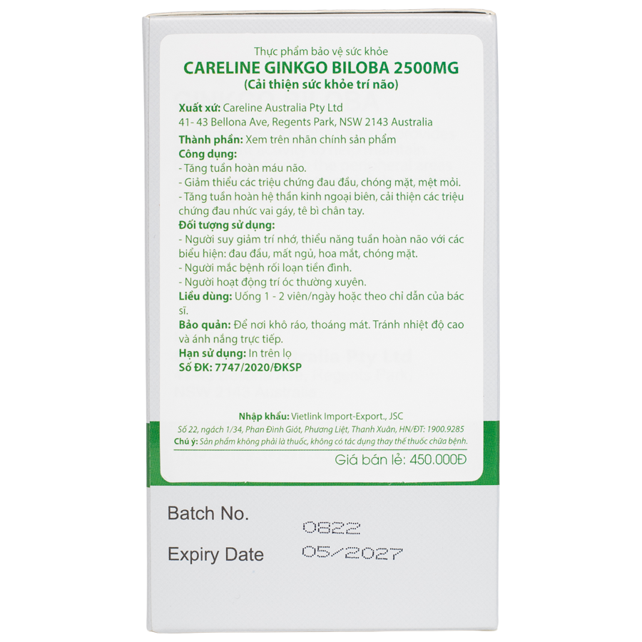 Careline Ginkgo Biloba 2500Mg - Cải Thiện Sức Khỏe Trí Não