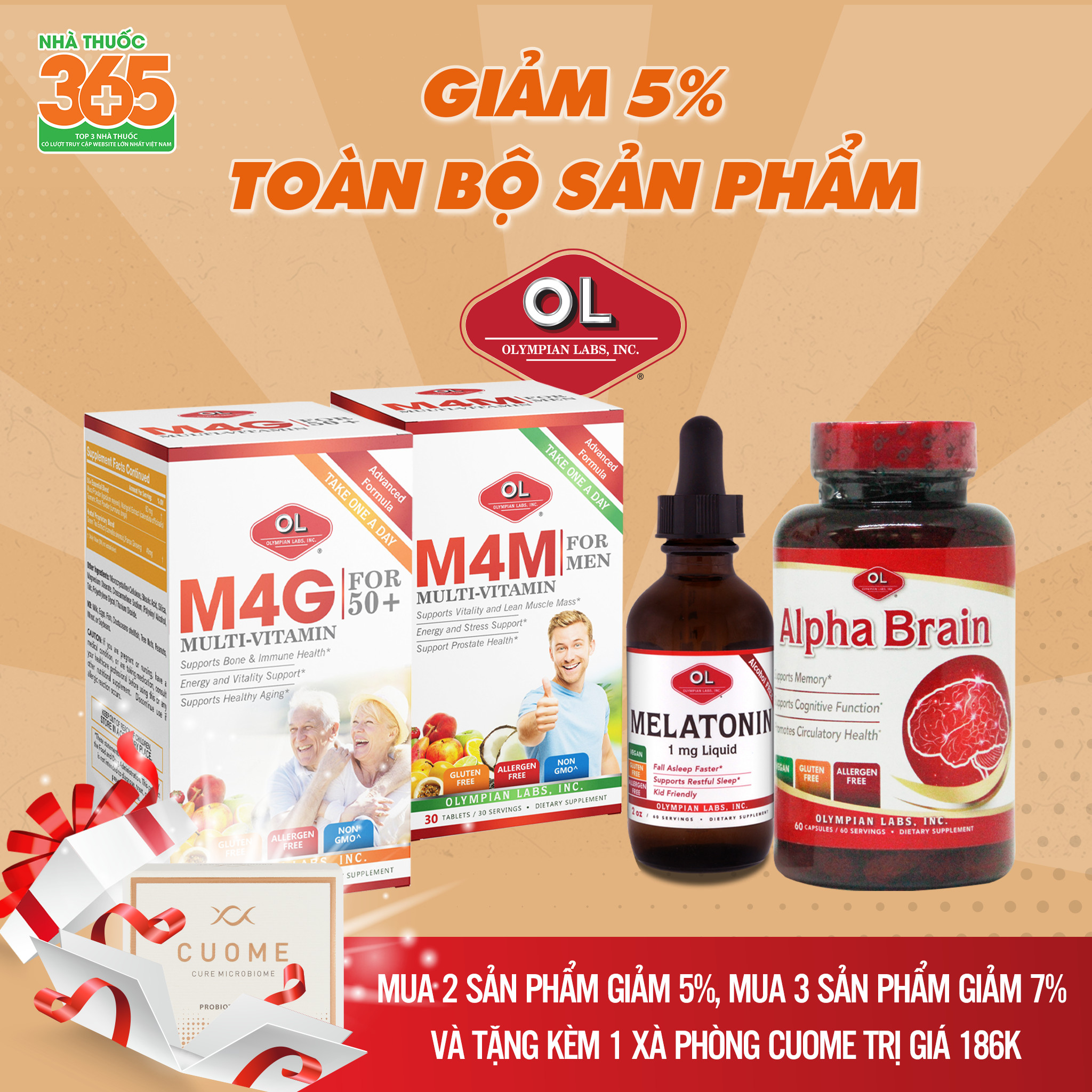 - GIẢM ngay 10% khi mua các sản phẩm vitamin tổng hợp hoặc Melatonin đến từ thương hiệu Olympian Labs Mỹ gồm: