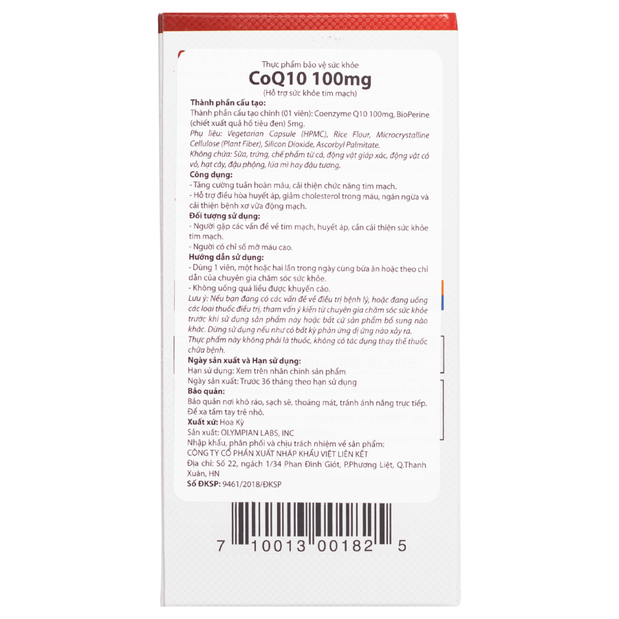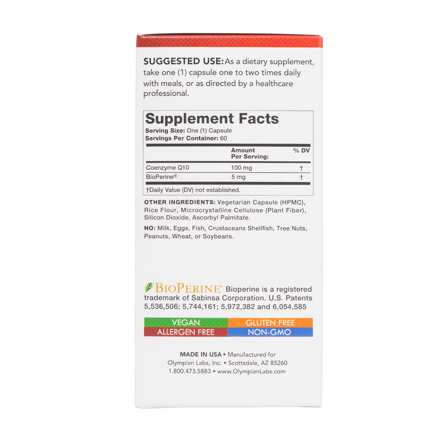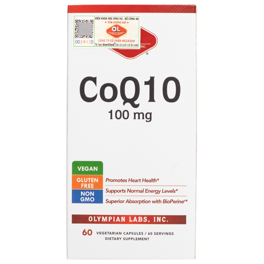 Olympian Labs CoQ-10 bổ sung hàm lượng Coenzyme Q10 cao, giúp hỗ trợ sức khỏe tim mạch, duy trì năng lượng cho cơ thể và hỗ trợ tăng cường khả năng hấp thu dưỡng chất với chiết xuất hạt tiêu đen (BioPerine®) đến từ thương hiệu Olymapian Labs - Mỹ.