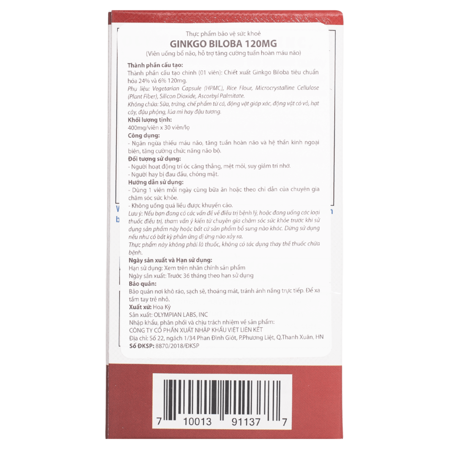 Do đó, sản phẩm Ginkgo Biloba 120mg của Olympian Labs vừa có khả năng chống oxy hóa các gốc tự do, vừa có khả năng lưu thông tuần hoàn máu của não bộ.