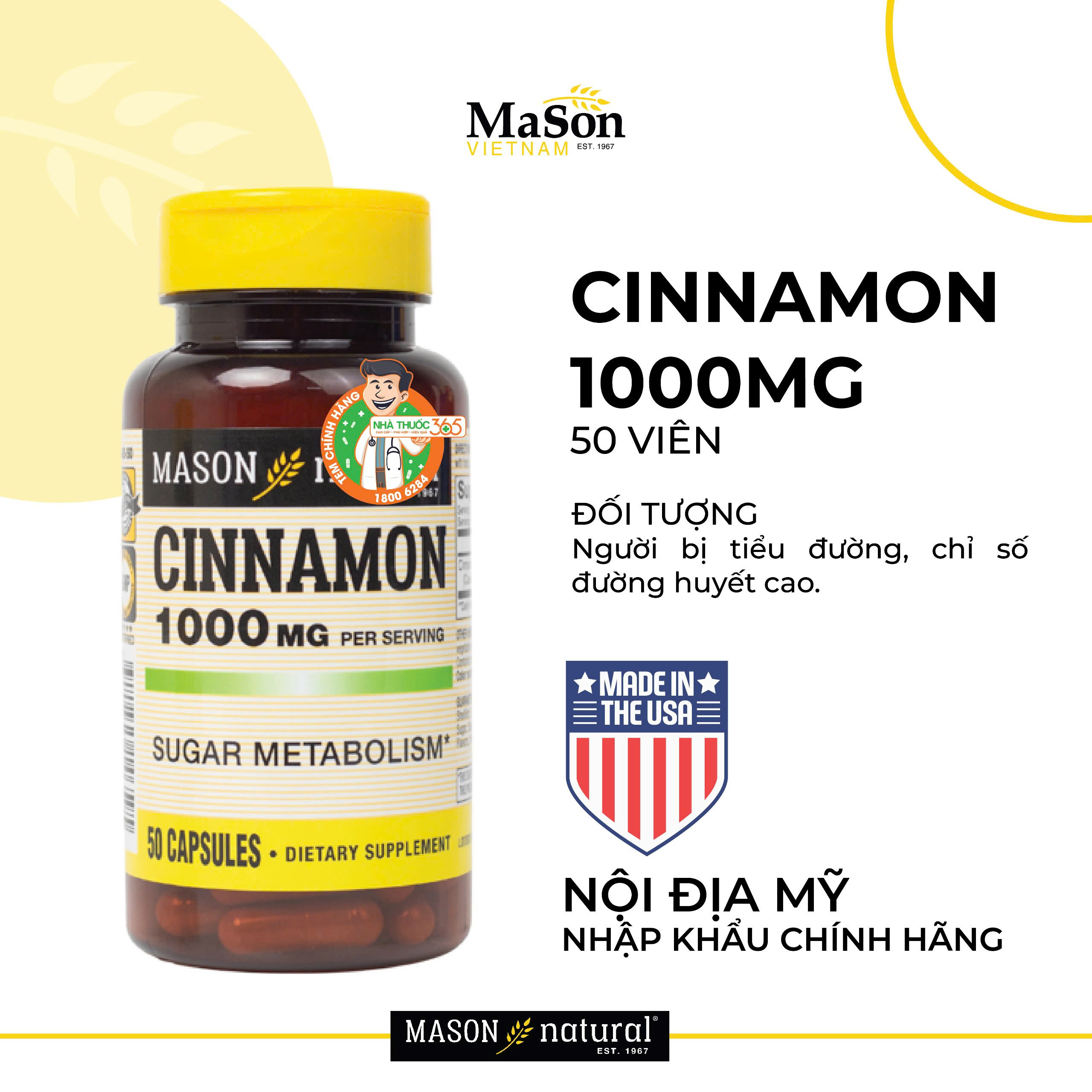 Mason Natural Cinnamon 1000mg - Hỗ trợ kiểm soát chỉ số đường huyết (Lọ 50 viên)