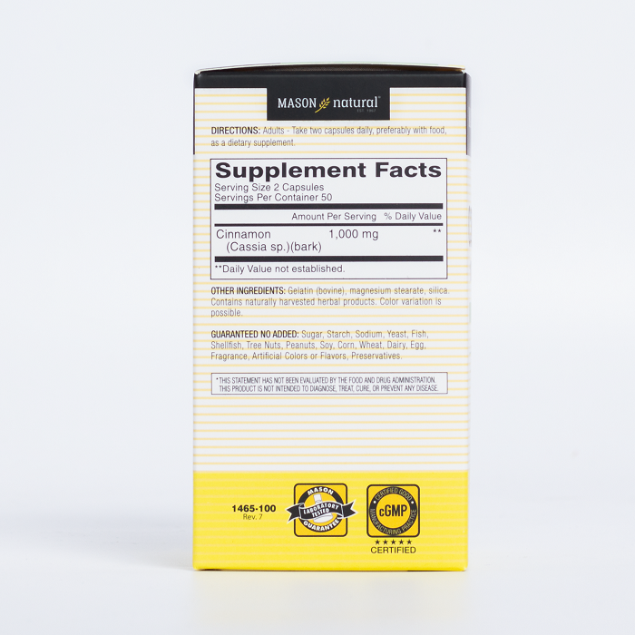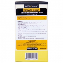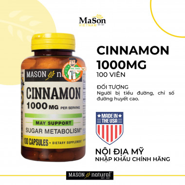 Mason Natural Cinnamon 1000mg - Hỗ trợ kiểm soát chỉ số đường huyết (Hộp 100 viên)