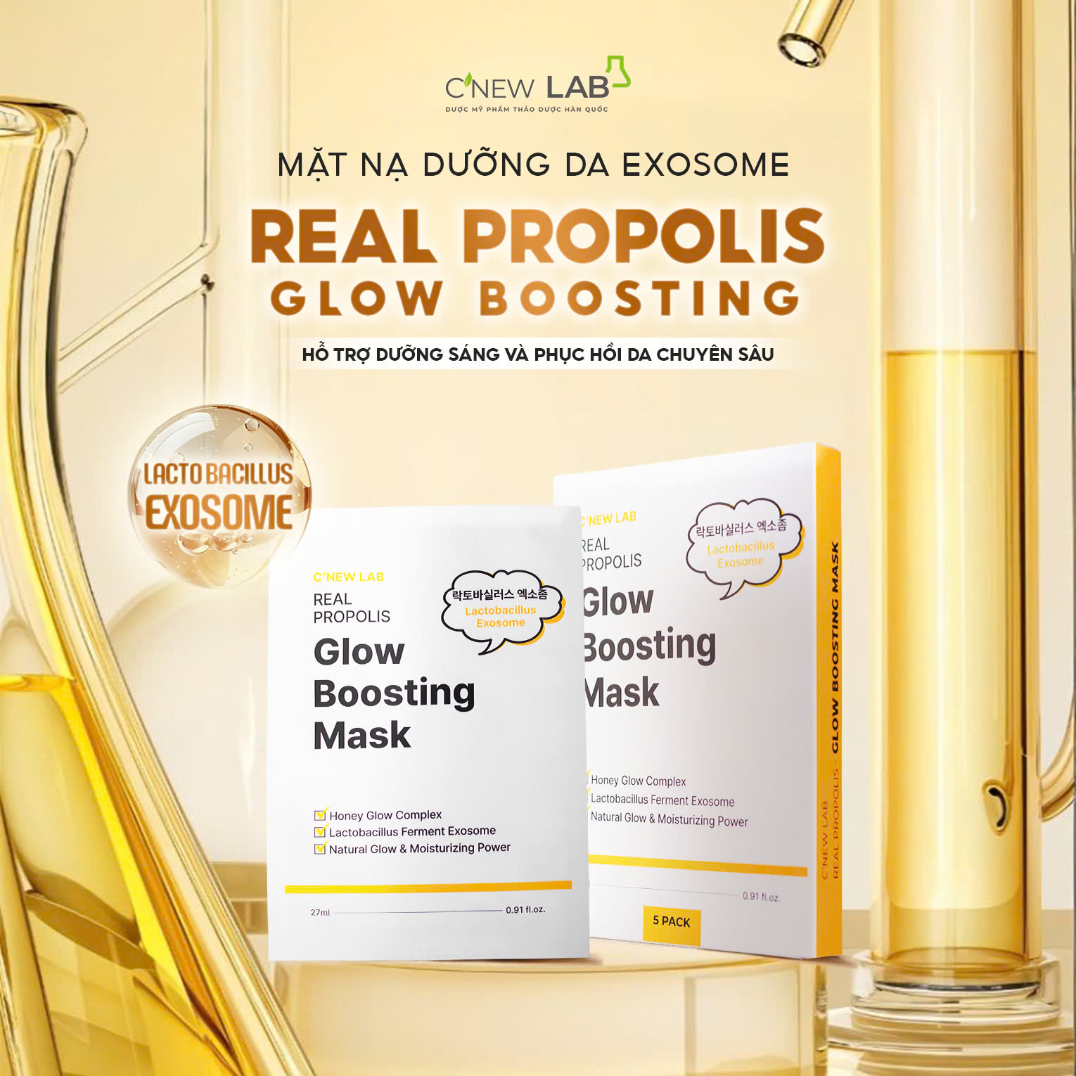 Mặt nạ keo ong C’New Lab ứng dụng công nghệ Exosome thực vật kết hợp Lactobacillus Ferment, hỗ trợ làm dịu nhanh, phục hồi làn da tổn thương và củng cố hàng rào bảo vệ da – lý tưởng cho làn da sau Treatment, Peel hay lăn kim.