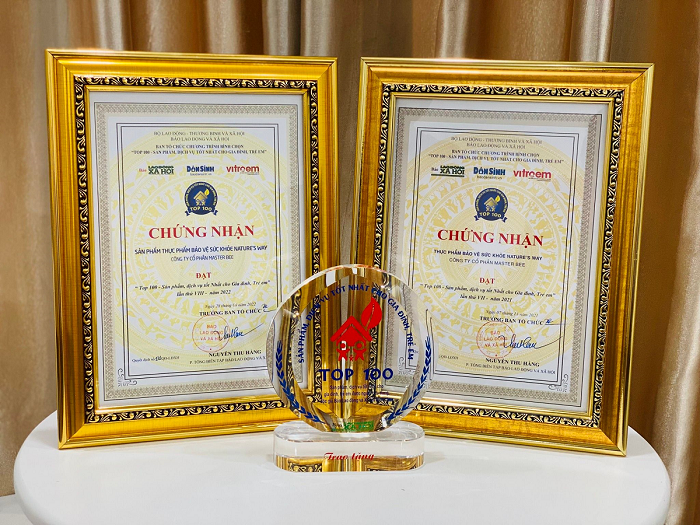 - 3 năm liên tiếp được Vinh danh trong “Top 100 sản phẩm tốt nhất cho gia đình, trẻ em Việt Nam” (2021, 2022, 2023).
