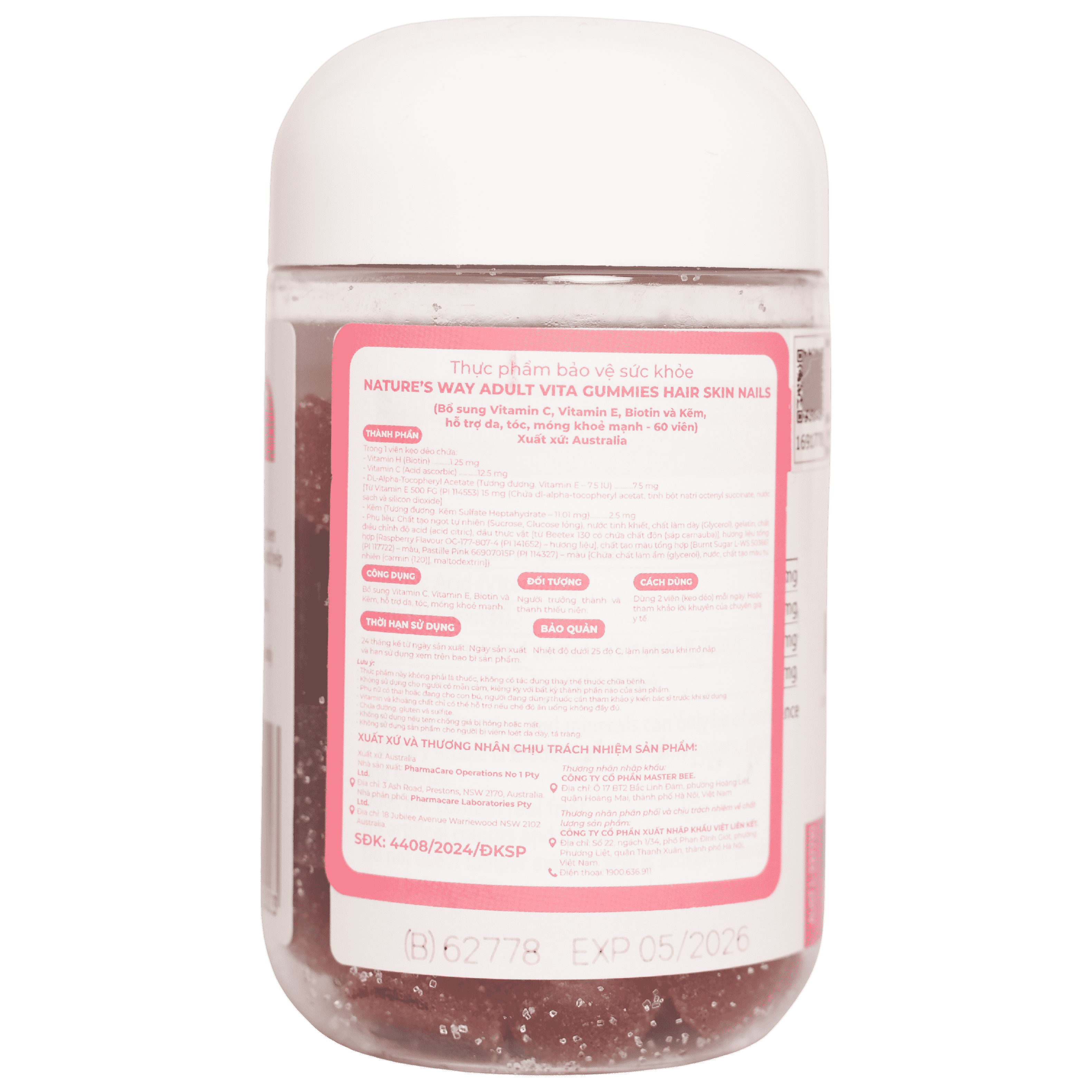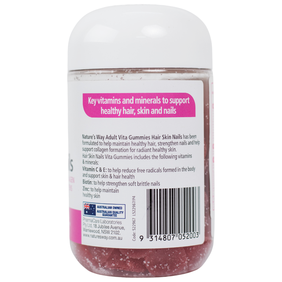 Nature’s Way Adult Vita Gummies Hair Skin Nails – Bổ sung Vitamin C, E, Biotin và kẽm hỗ trợ da, tóc móng khỏe mạnh
