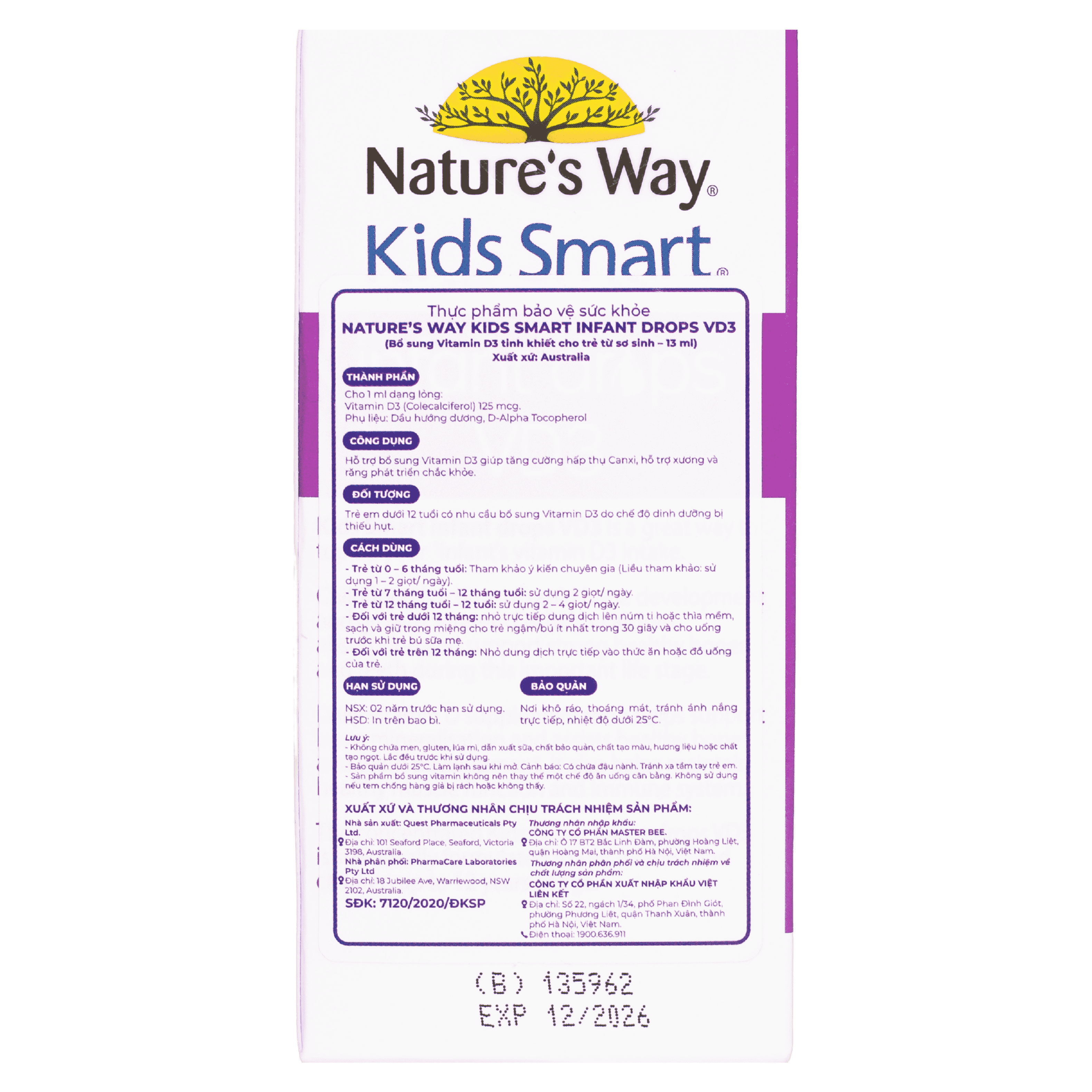 Nature's Way Kids Smart Infant Drops VD3 - Hỗ trợ bổ sung Vitamin D3 cho trẻ - Hộp 13ml