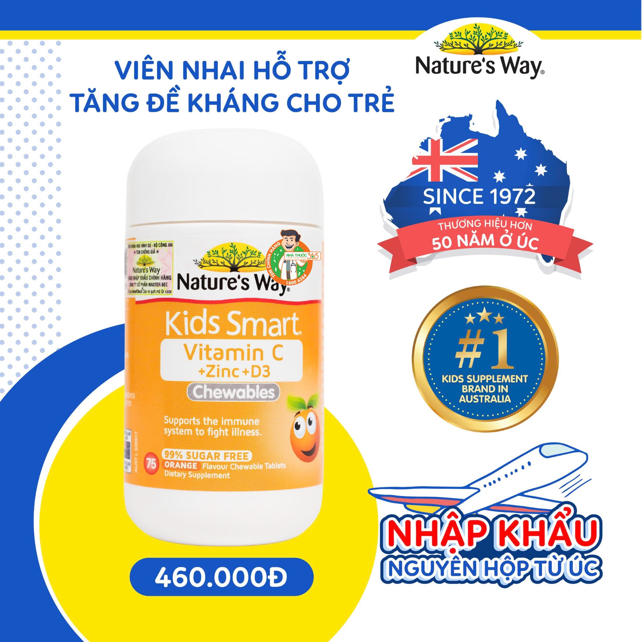Nature's Way Kids Smart Vitamin C + Zinc + D3 Chewables Tablets - Bổ sung Vitamin C và Kẽm cho bé