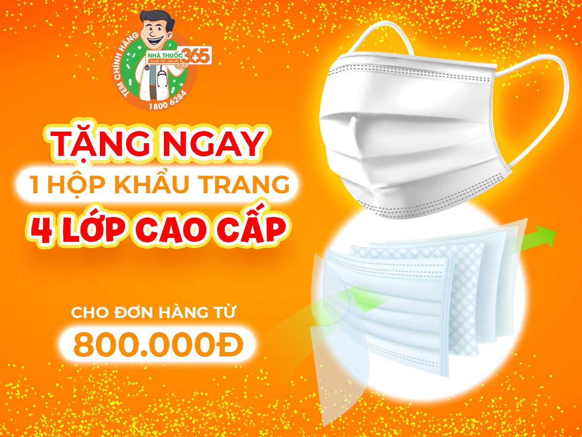 Bên cạnh đó, với mỗi hóa đơn thanh toán tại nhà thuốc có giá trị đơn hàng từ 800.000đ sẽ được tặng 1 hộp khẩu trang.