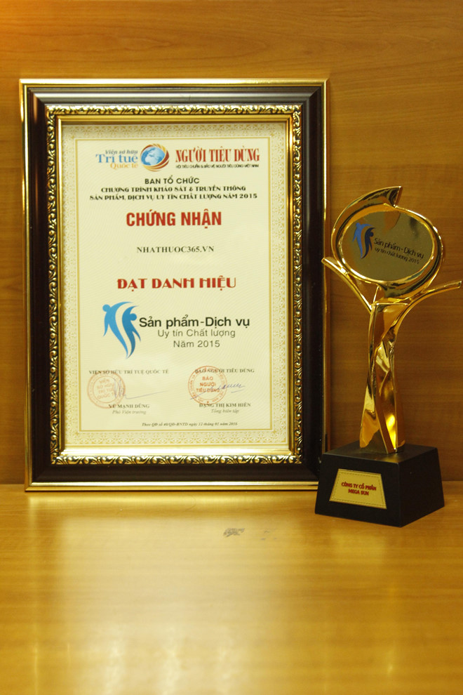 Việc vinh dự nhận được chứng nhận Sản phẩm, dịch vụ uy tín chất lượng năm 2015 đã một lần nữa khẳng định sự tín nhiệm của khách hàng đối với các sản phẩm, dịch vụ mà nhathuoc365.vn đang cung cấp ra thị trường!