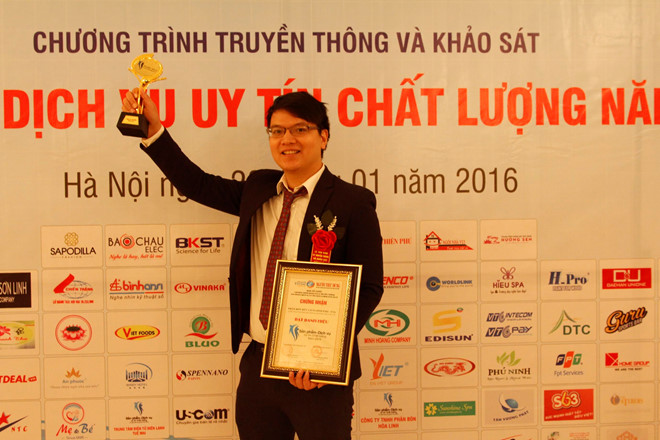 Cúp vàng và danh hiệu "Sản phẩm - Dịch vụ uy tín chất lượng năm 2015" do độc giả bình chọn
