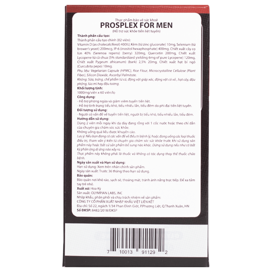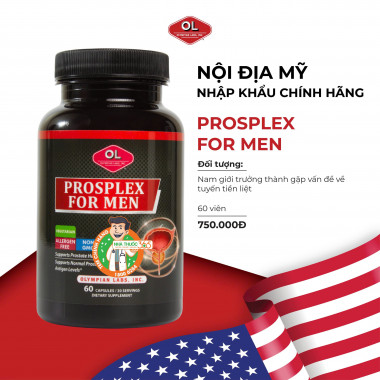 Prosplex For Men của Olympian Labs là phẩm được hỗ trợ cải thiện sức khỏe tuyến tiền liệt, giảm các triệu chứng tiểu đêm, tiểu nhiều lần, tiểu khó thường gặp ở nam giới tuổi trung niên và hỗ trợ nâng cao chức năng sinh lý nam giới.