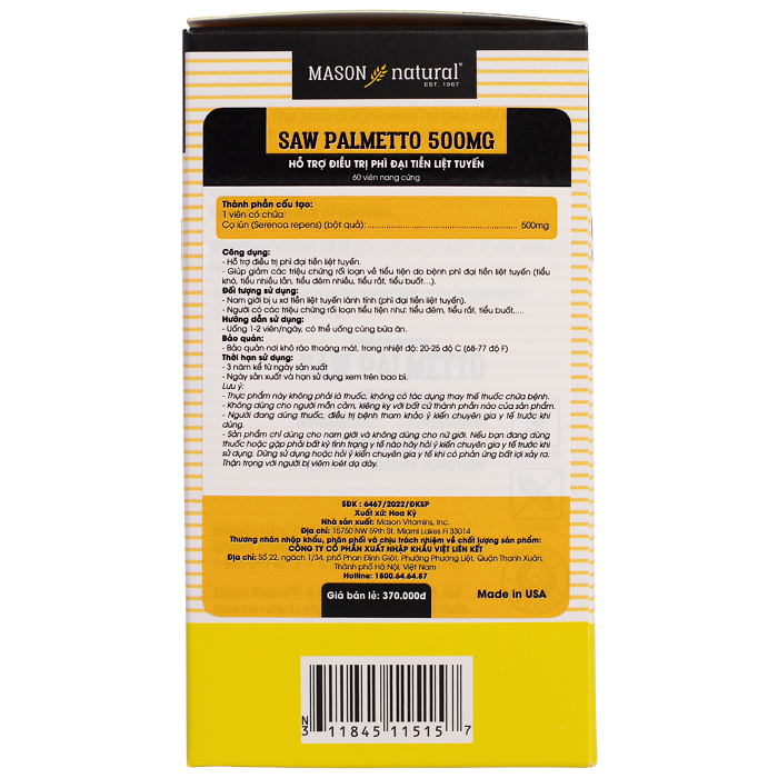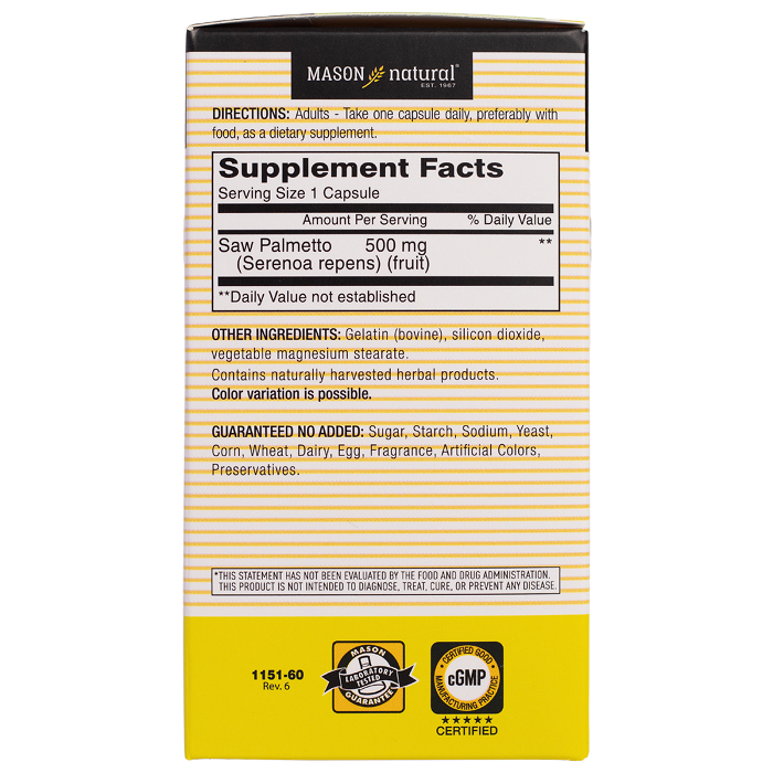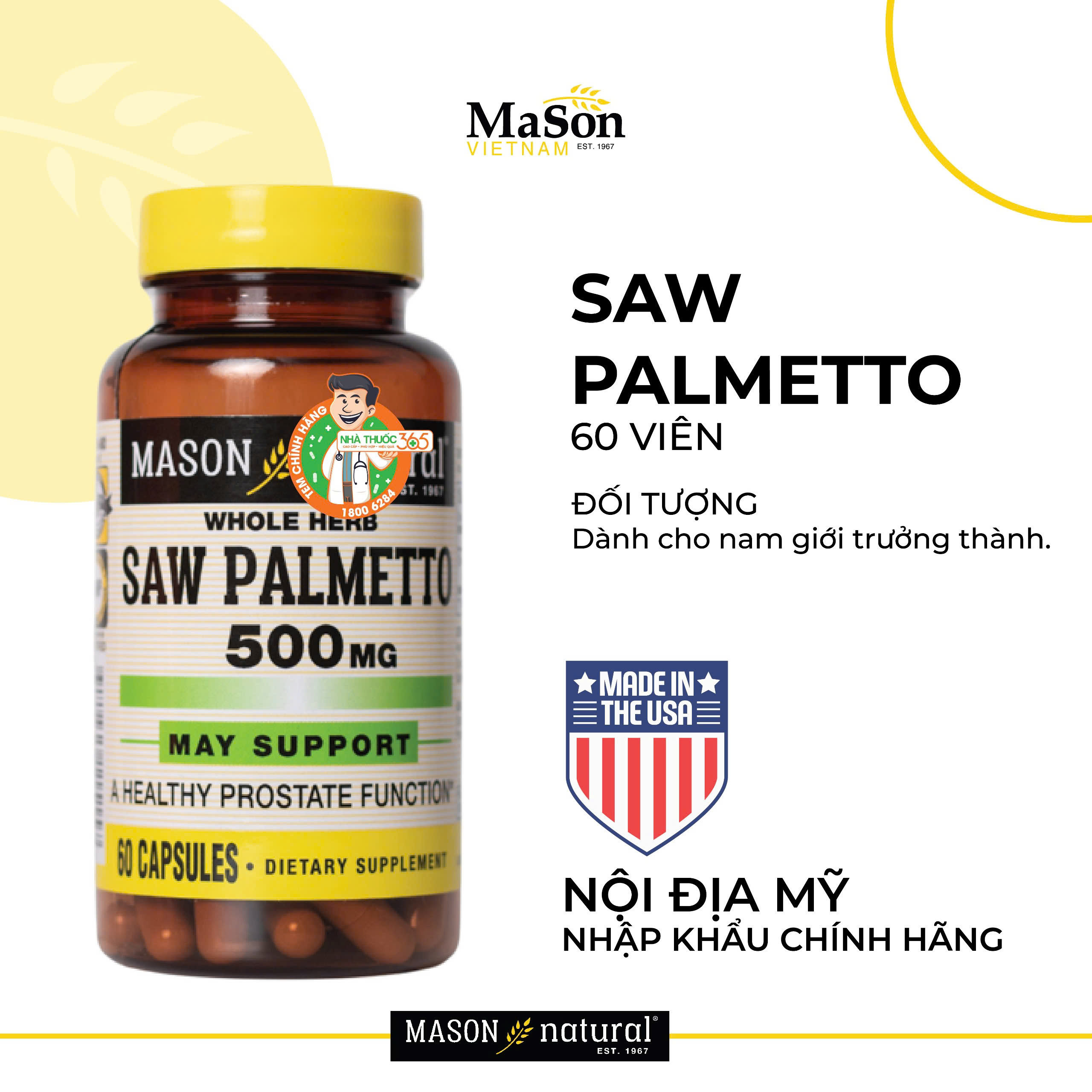 Mason Natural Saw Palmetto 500mg - Hỗ trợ điều trị phì đại tiền liệt tuyến