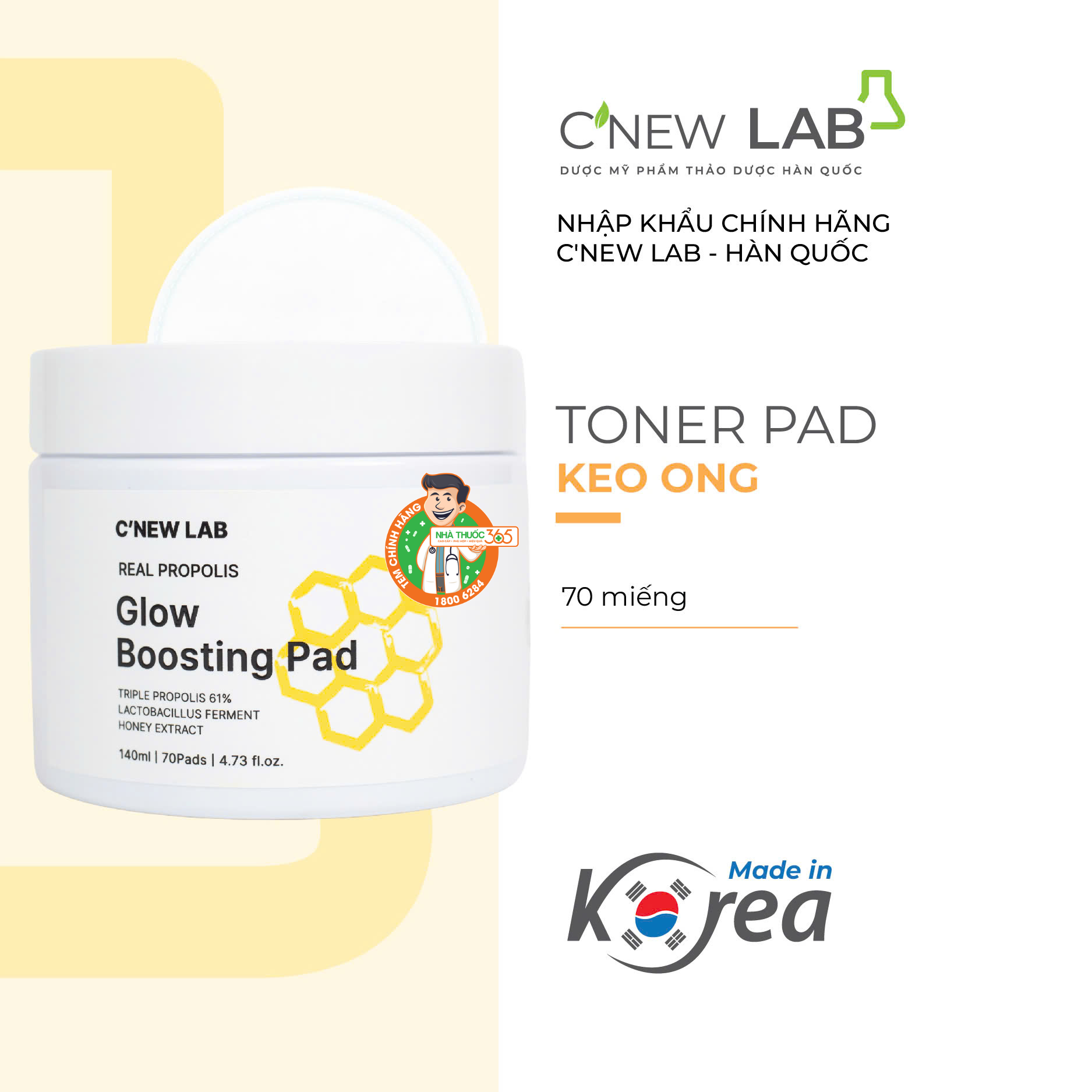 TonerPad tinh chất keo ong đích thực C’New Lab Real Propolis Glow Boosting Pad là sự kết hợp đặc biệt của tổ hợp 3 loại keo ong (xanh – đỏ – đen) hàm lượng cao đến 61%, cùng chiết xuất mật ong lên men và Lactobacillus, mang đến khả năng hỗ trợ cấp ẩm, dưỡng sáng và làm dịu làn da từ bên trong.